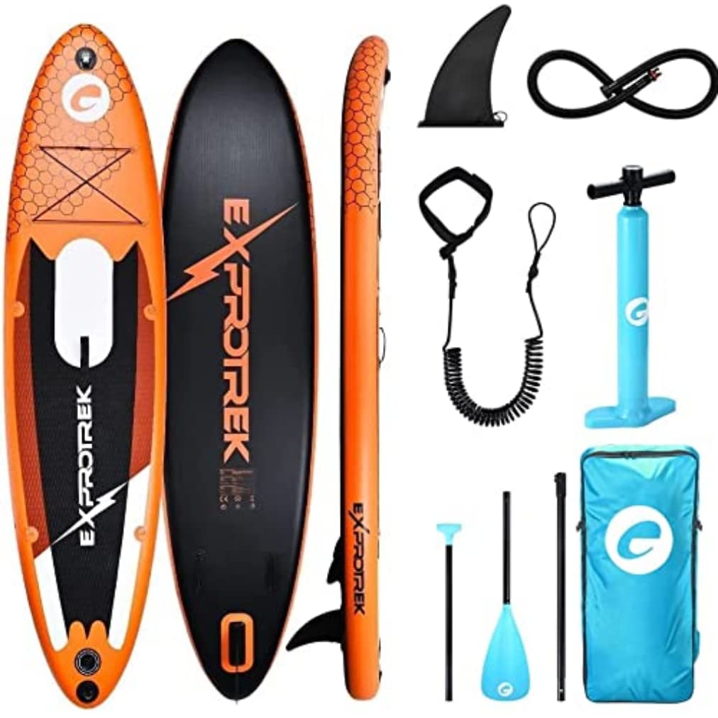 Prêt à dominer les vagues ? Cette planche SUP gonflable Exprotrek de 6 pouces d'épaisseur offre stabilité et confort, que vous soyez débutant ou confirmé. Supporte jusqu'à 200kg – idéale pour une balade en solo ou à deux. Le kit comprend une pagaie réglable en aluminium, une pompe et un leash. Surface antidérapante pour plus de sécurité. Une fois dégonflée, elle se range facilement dans un sac à dos. Parfaite pour les sessions mer, lac ou rivière ! Amusement garanti.