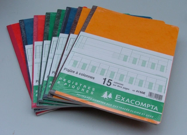 Si tu cherches un cahier comptable pro et clair pour gérer tes achats, celui d'Exacompta est fait pour toi ! Il a 15 colonnes réparties sur 2 pages, parfait pour classer tes dépenses par fournisseur et par catégorie. Les pages sont foliotées (numérotées) pour éviter les erreurs ou les falsifications - ya même un système de report de total entre les doubles pages. Le papier est en 110g/m2, légèrement teinté pour reposer les yeux et mat pour que l'écriture soit nette. En plus, il est certifié FSC, donc éco-responsable. La couverture est rigide et résistante, made in France comme le papier ! Dimensions : 32x25cm, 80 pages. Disponible en 4 couleurs aléatoires (jaune, bleu, rouge, vert). Parfait pour les artisans, les petites entreprises ou même pour suivre son budget perso. Un classique indémodable !