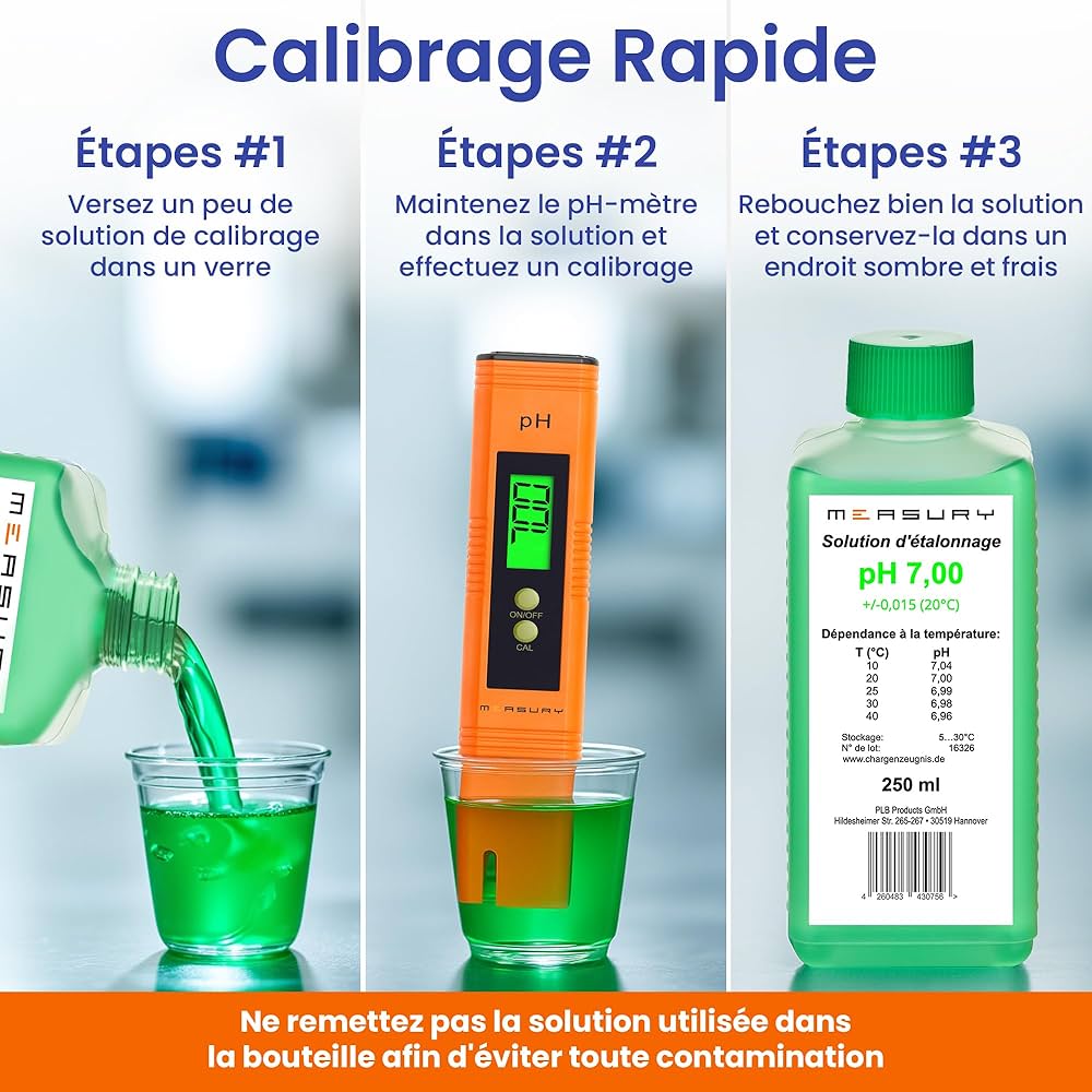 Pour des mesures de pH toujours précises ! Cette solution Measury pH 7.00 de 250 ml est prête à l'emploi – aucun mélange nécessaire. Compatible avec tous les pH-mètres, elle offre une précision de ±0,015 pH. Parfaite pour les labos, les aquariophiles ou les passionnés de jardinage. Économique et fiable.