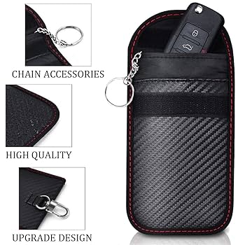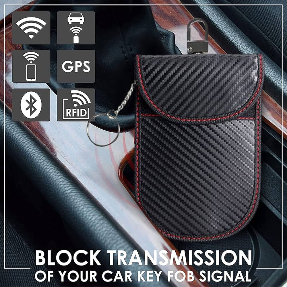 Pour protéger ta voiture contre le piratage, ces pochettes RFID sont essentielles ! Lot de 2 (noir et rouge), taille 14x9cm, elles bloquent tous les signaux (RFID, NFC, Bluetooth, etc.). En tissu nano technologie et cuir résistant à l’eau. Test facile : mets ta clé dedans, et la voiture ne répond plus. Idéal pour toutes les marques avec keyless. Livré avec autocollants réfléchissants. Simple, efficace, et peace of mind garanti !