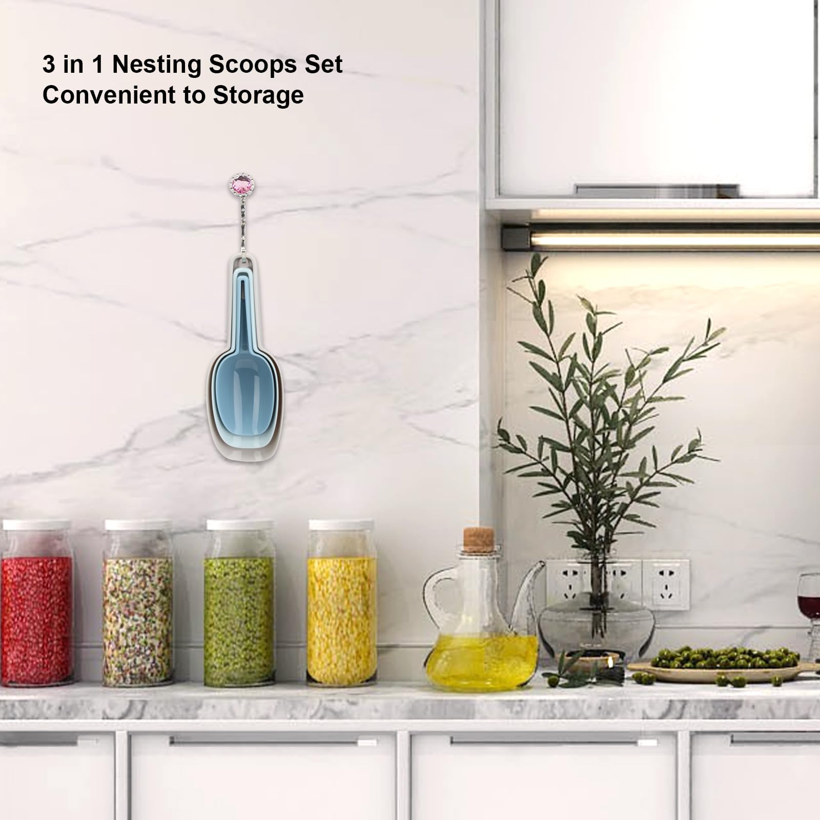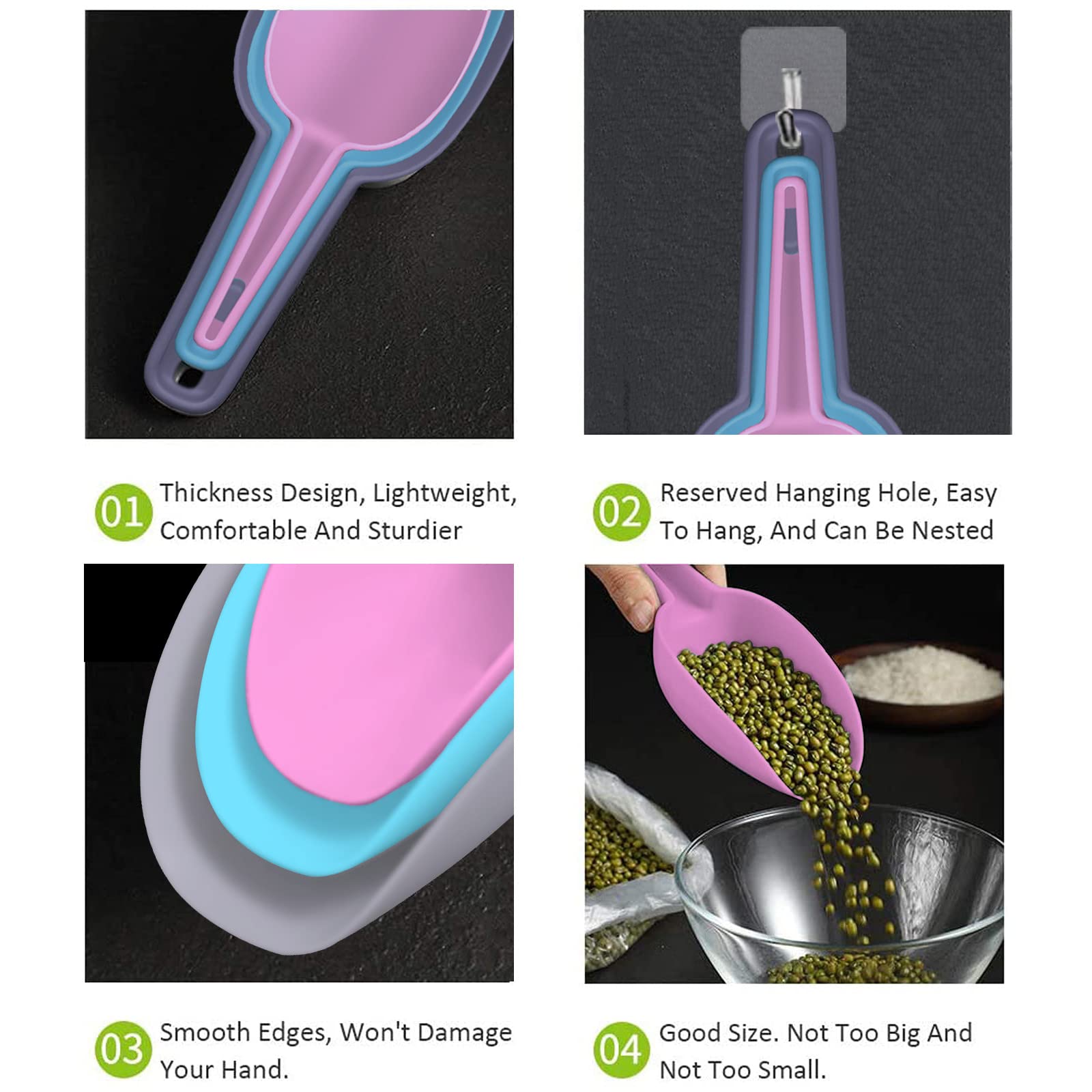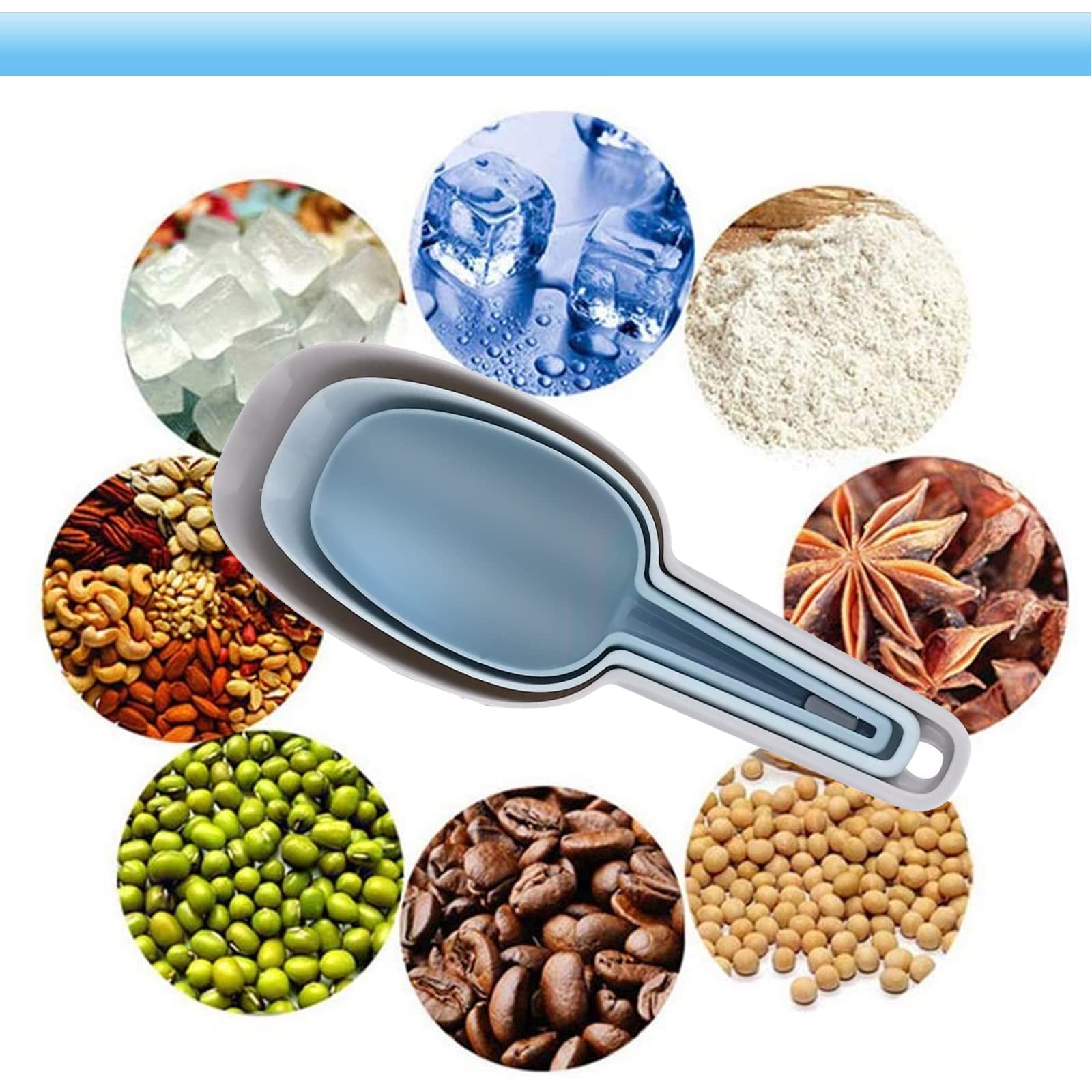 Ces pelles en plastique, tu vas les utiliser partout ! Lot de 3 pelles + 3 mousquetons noirs → pratique pour accrocher dans la cuisine ou emporter en balade. Utilisation : pour servir le riz, la farine, les glaçons, les céréales, les croquettes pour chat/chien, le pop-corn... Bref, tout ce qui est granuleux. Matière : plastique solide → léger et facile à nettoyer (juste un rinçage à l'eau). Les mousquetons permettent de les attacher à un sac ou un crochet → super pour les pique-niques, le camping ou même la plage. Prix tout doux pour 3 pelles → tu peux en avoir une pour chaque usage. Si tu en as marre de verser trop de riz ou de faire tomber des glaçons, ces pelles sont faites pour toi !