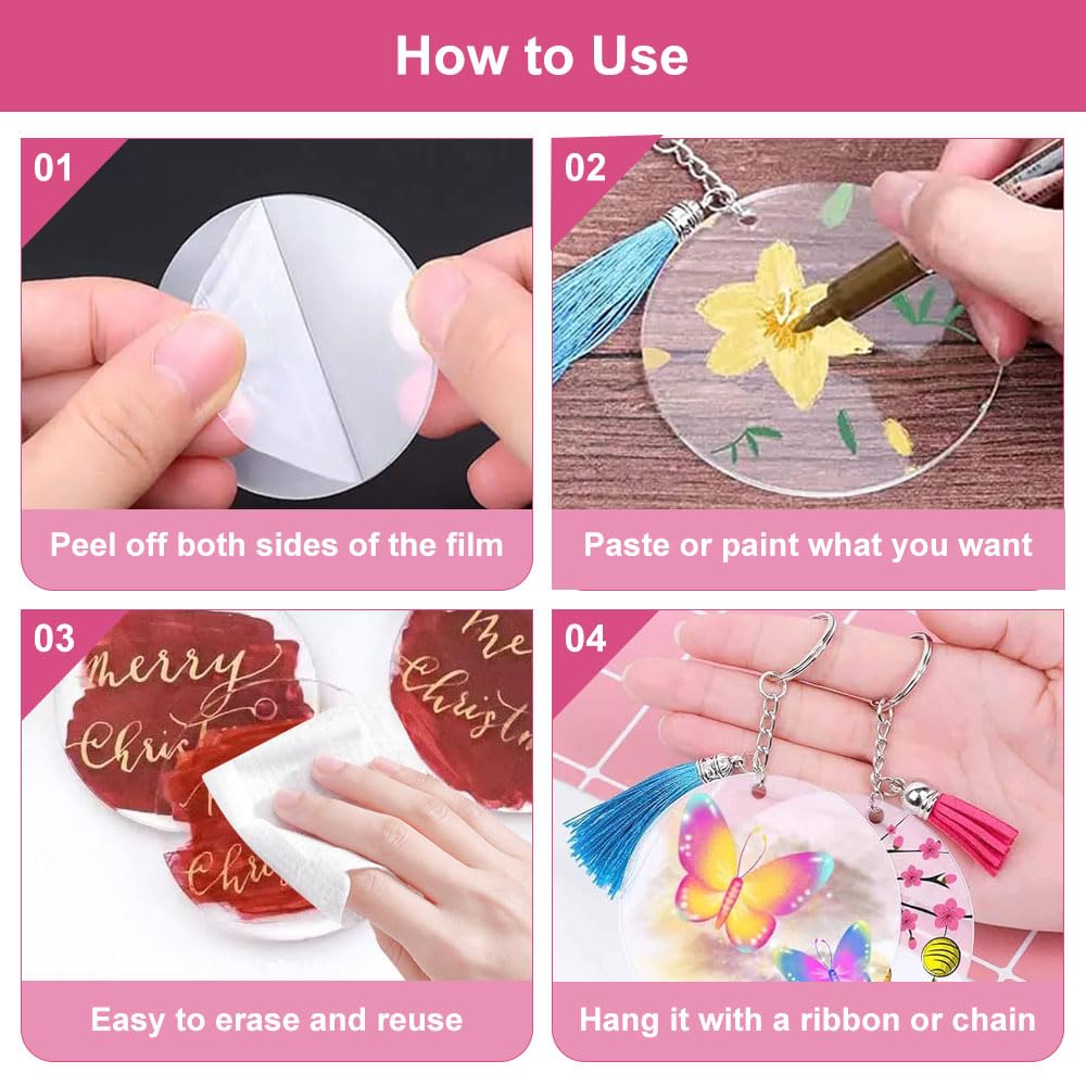 Hey les créatifs ! Voici 50 disques en acrylique transparent hyper pratiques pour tous vos projets DIY. Chaque disque fait 5cm de diamètre sur 2mm d'épaisseur, avec un petit trou pour suspendre ou attacher. Le matériau est de qualité : transparent, lisse, léger et assez résistant. Ils sont fournis avec un film protecteur des deux côtés pour éviter les rayures - vous l'enlevez juste avant utilisation. Laissez parler votre imagination : peinture, gravure, autocollants, paillettes... Parfaits pour fabriquer des porte-clés personnalisés, des décorations de Noël, des étiquettes cadeaux ou même des accessoires pour la résine. Le top pour occuper les enfants un après-midi pluvieux ou pour ajouter une touche perso à vos créations. Nettoyage facile à l'eau ou avec un chiffon humide. Prêts à être customisés !
