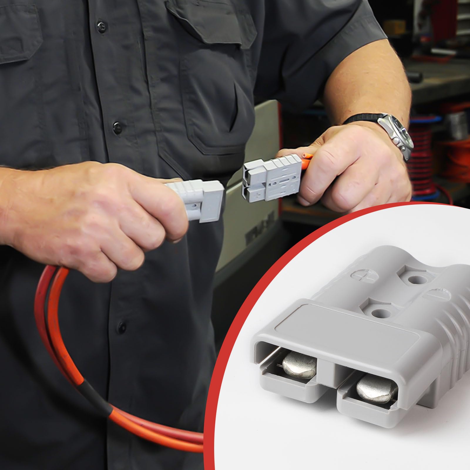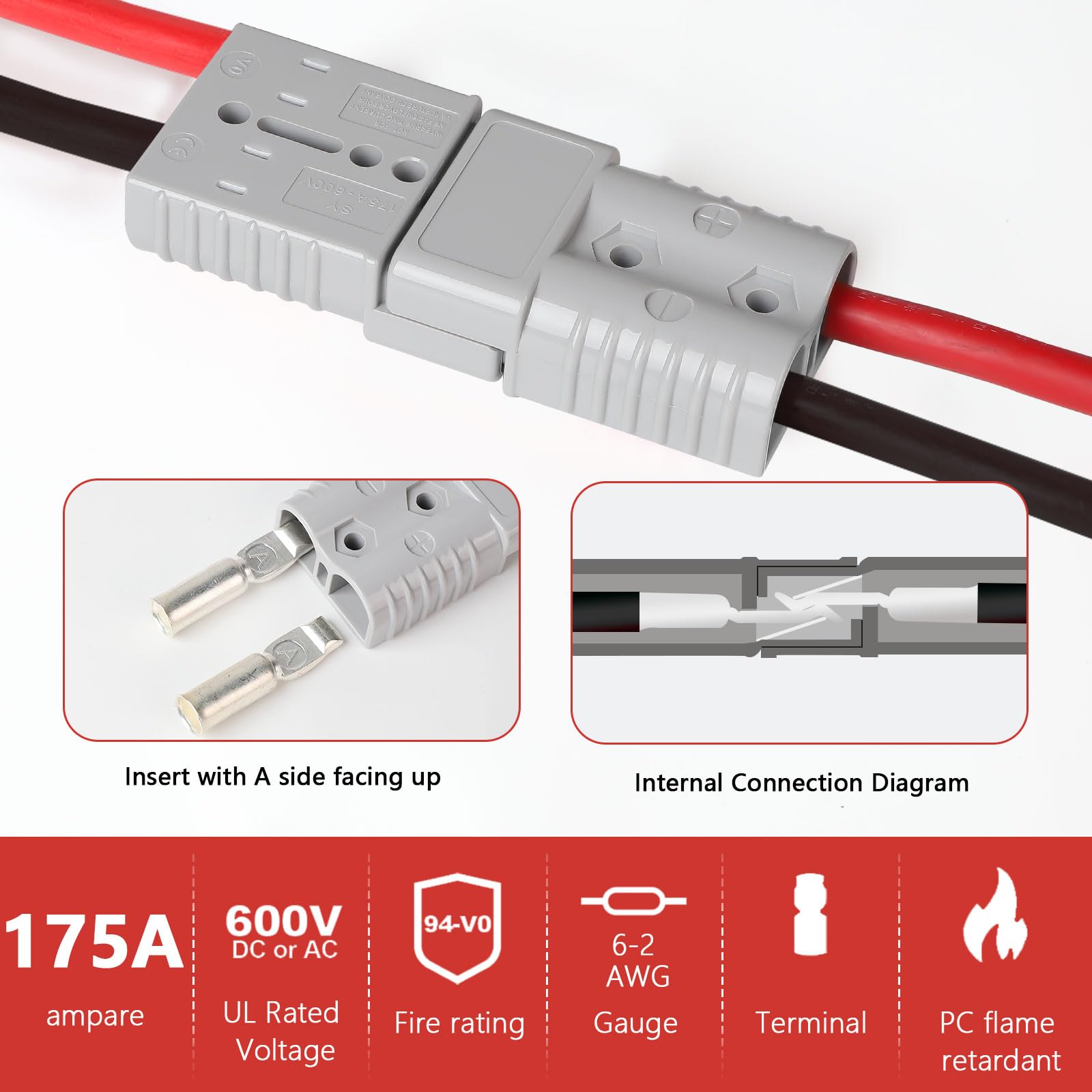 Besoin de connecter des grosses batteries ou ton installation solaire ? Ces connecteurs Anderson 175A/600V sont faits pour ça ! En PC ignifugé, ils résistent à la chaleur et à l'usure. Les bornes sont en cuivre zingué, hyper conductrices, et faciles à souder ou sertir (pour câbles 2-6 AWG). Le ressort en acier au manganèse assure un bon contact, et le côté anti-dérapant facilite la manipulation. Le 'clic' à l'insertion confirme que c'est bien connecté. Parfait pour les camping-cars, bateaux, groupes électrogènes, ou même les trottinettes électriques. Attention : ne connecte que les mêmes couleurs ! Inclus : 2 connecteurs gris + 4 bornes. La solution pro pour le courant fort !