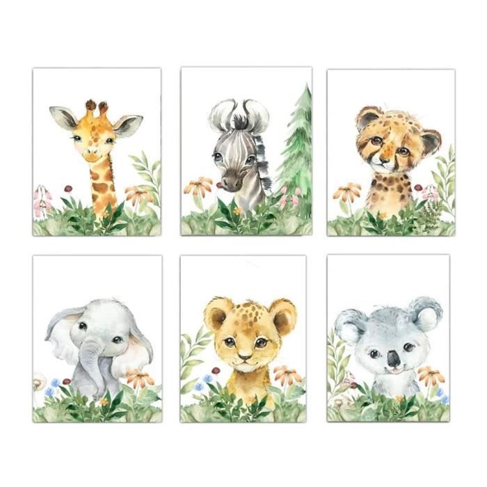 Ces posters artpin sont craquants pour décorer une chambre d'enfant ! Lot de 6 en format A4, avec des animaux de la forêt (tigre, girafe, singe...) dans un style indien doux. Impression qualité sur papier épais 300 g/m² surface mate. Parfaits dans des cadres ou juste punaisés au mur. Idéal pour stimuler l'imagination des petits. Super cadeau pour une naissance, un baptême ou Noël. 🐘