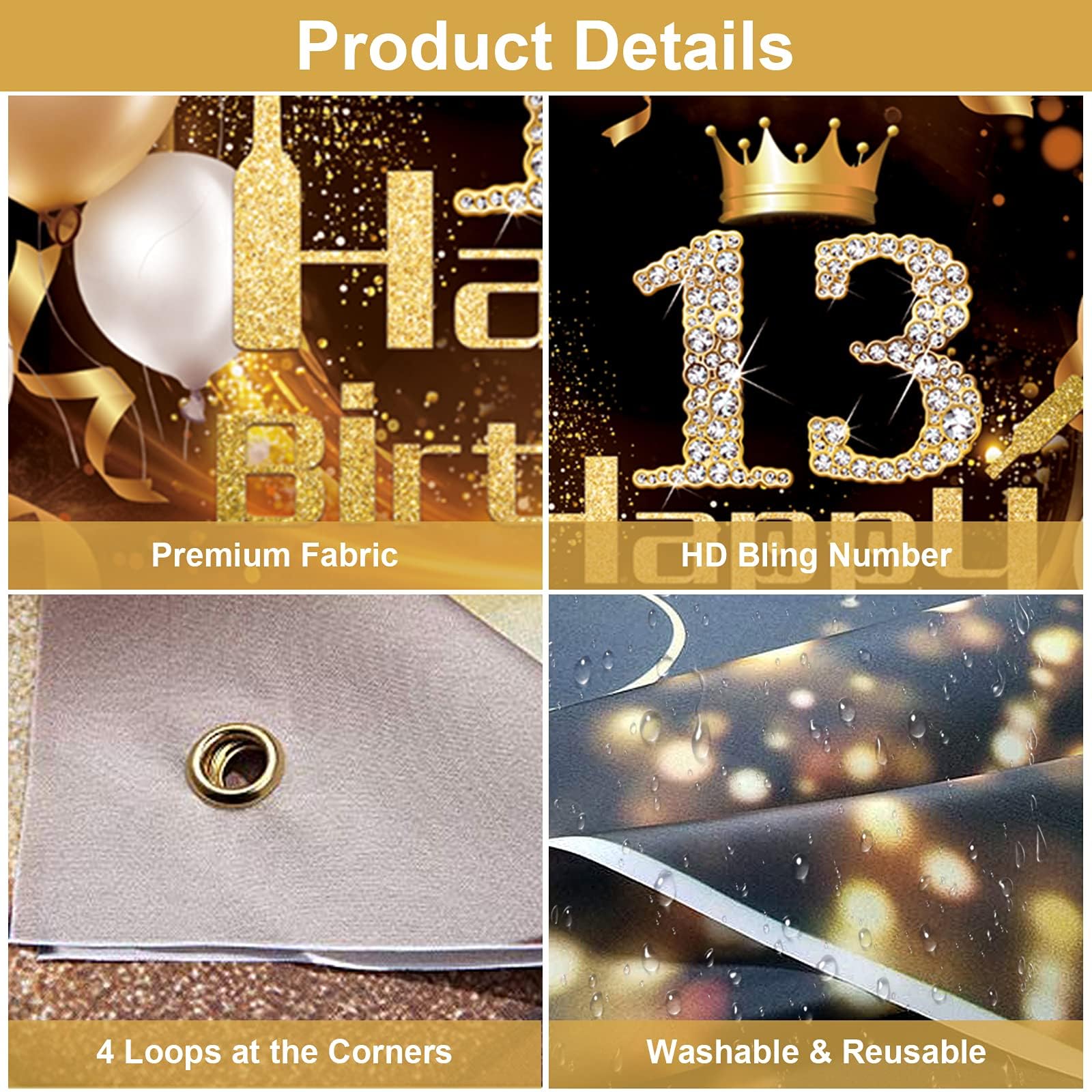 Pour les 13 ans de votre ado, cette bannière 'Happy 13th Birthday' en noir et or va déchirer ! Fabriquée en papier de qualité, elle est solide et peut être réutilisée. Le montage est hyper simple : il suffit d'attacher les lettres avec le ruban fourni (2 mètres inclus) et de les ajuster comme vous voulez. Vous pouvez l'accrocher au mur, à la fenêtre, au plafond... où vous voulez pour créer une déco de ouf ! C'est parfait pour les fêtes à la maison, en extérieur, ou même comme fond photo pour immortaliser l'événement. Les couleurs sont classe et modernes, ça plaît autant aux filles qu'aux garçons. Le pack comprend la bannière + le ruban. Attention : les couleurs peuvent varier légèrement selon l'écran, mais on vous assure que c'est du beau travail !