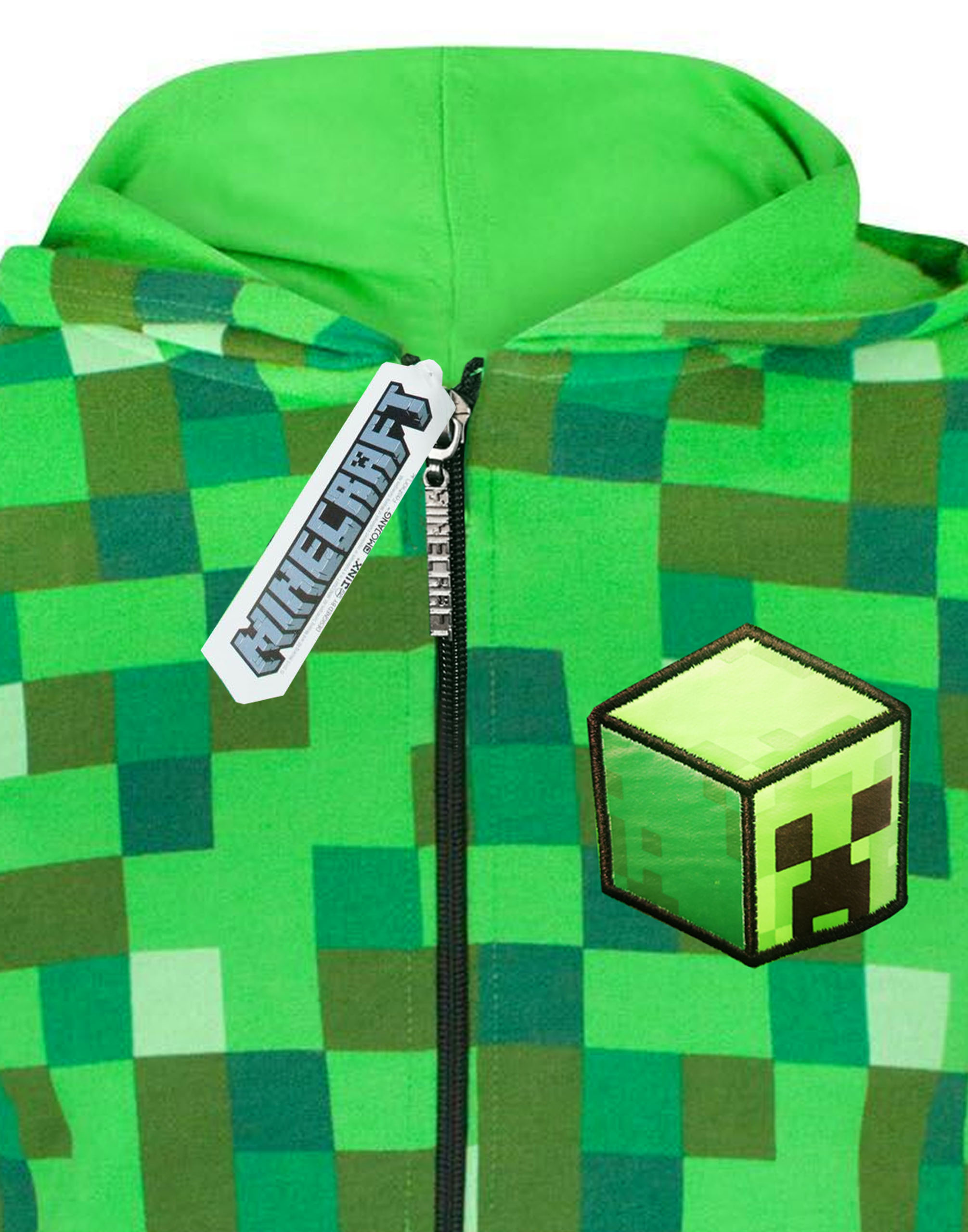 Les fans de Minecraft, ce sweat à capuche Creeper est fait pour vous ! En coton (80%) et polyester (20%), il est confortable, chaud et parfait pour jouer ou se détendre. Disponible de la taille 3-4 ans à 14-15 ans, avec manches longues, capuche douce et poche kangourou. Design avec le motif pixelisé vert Creeper et le logo Minecraft officiel. Idéal pour un déguisement, un anniversaire ou juste pour le quotidien. Lavage machine recommandé à l'envers pour préservez les couleurs. Un must-have pour tous les petits gamers !