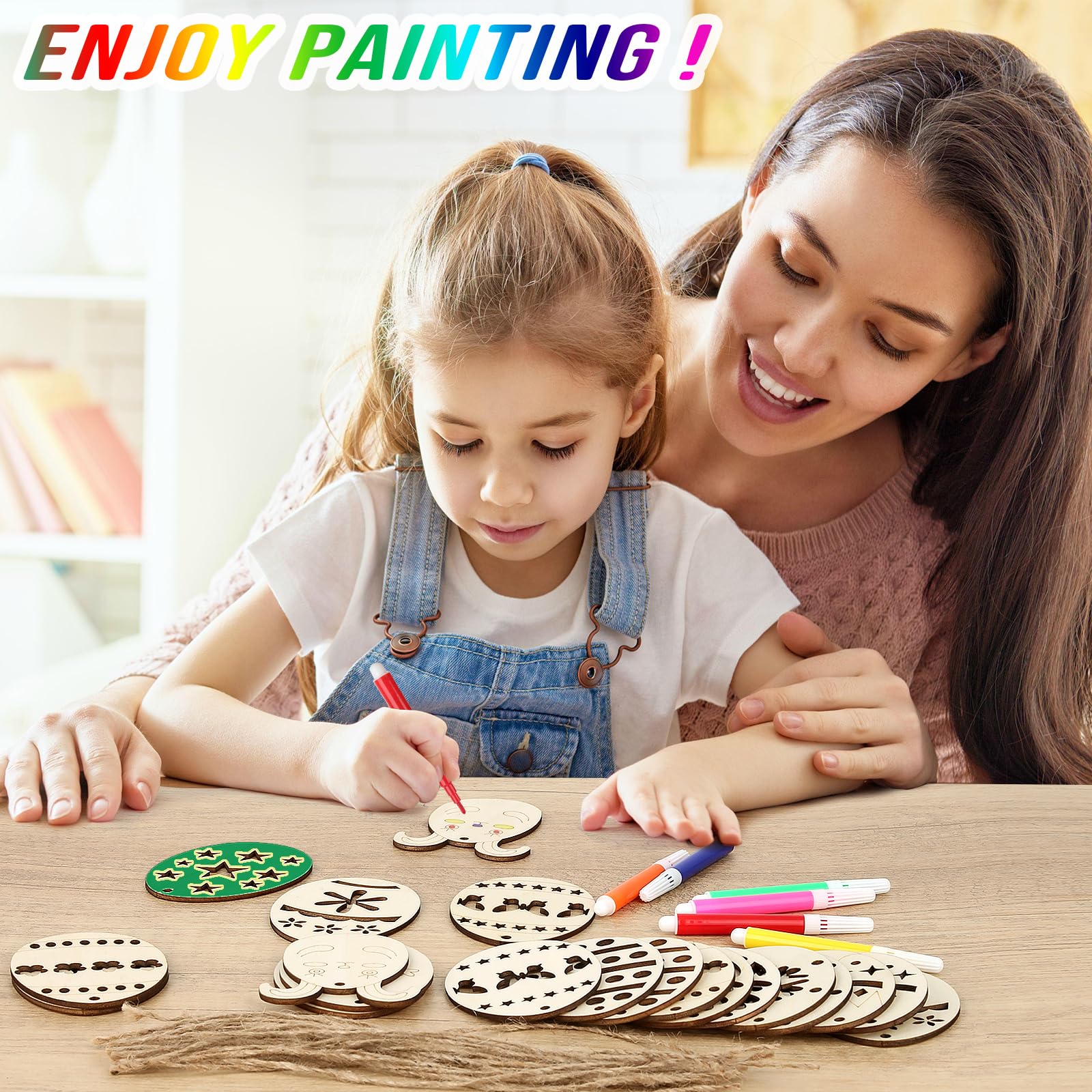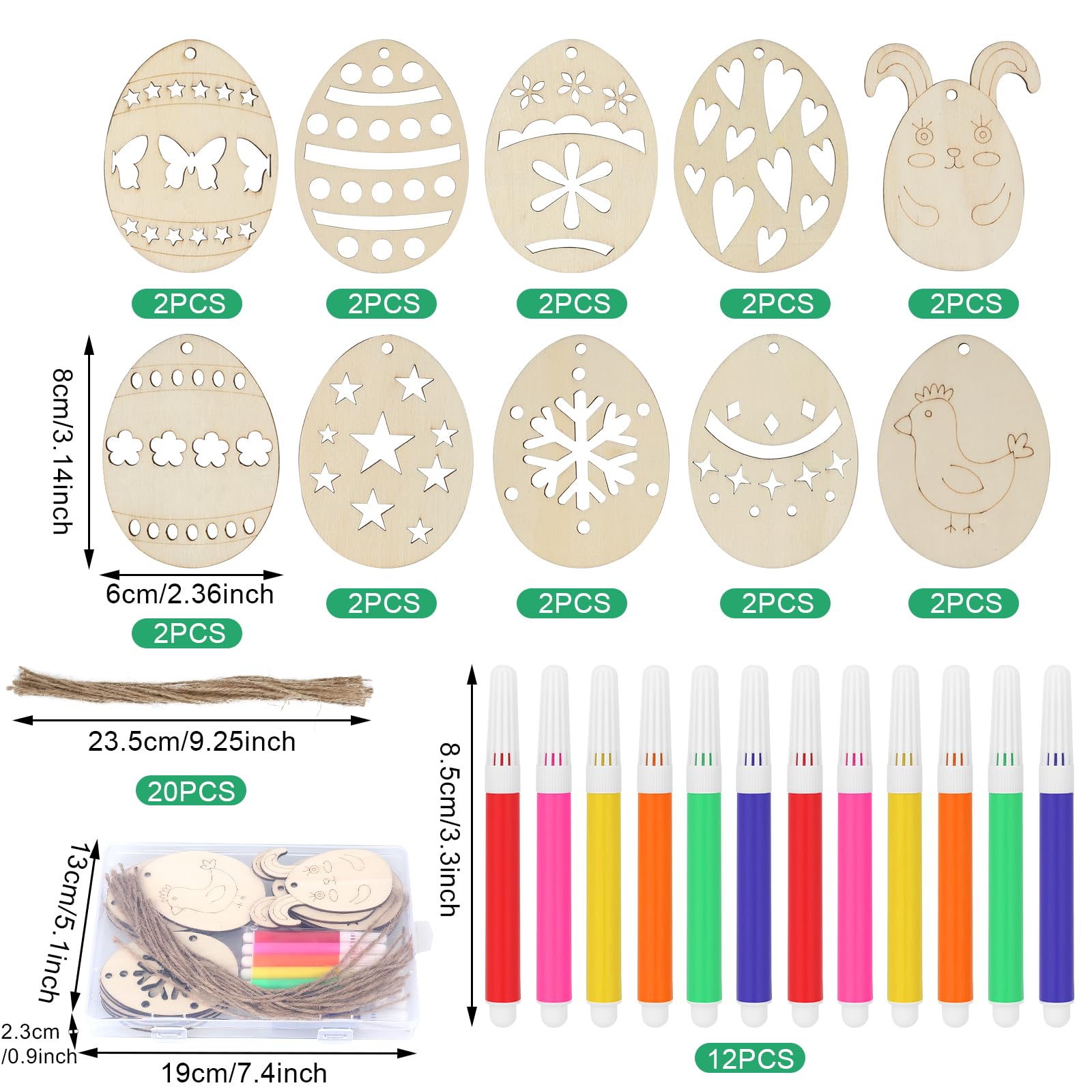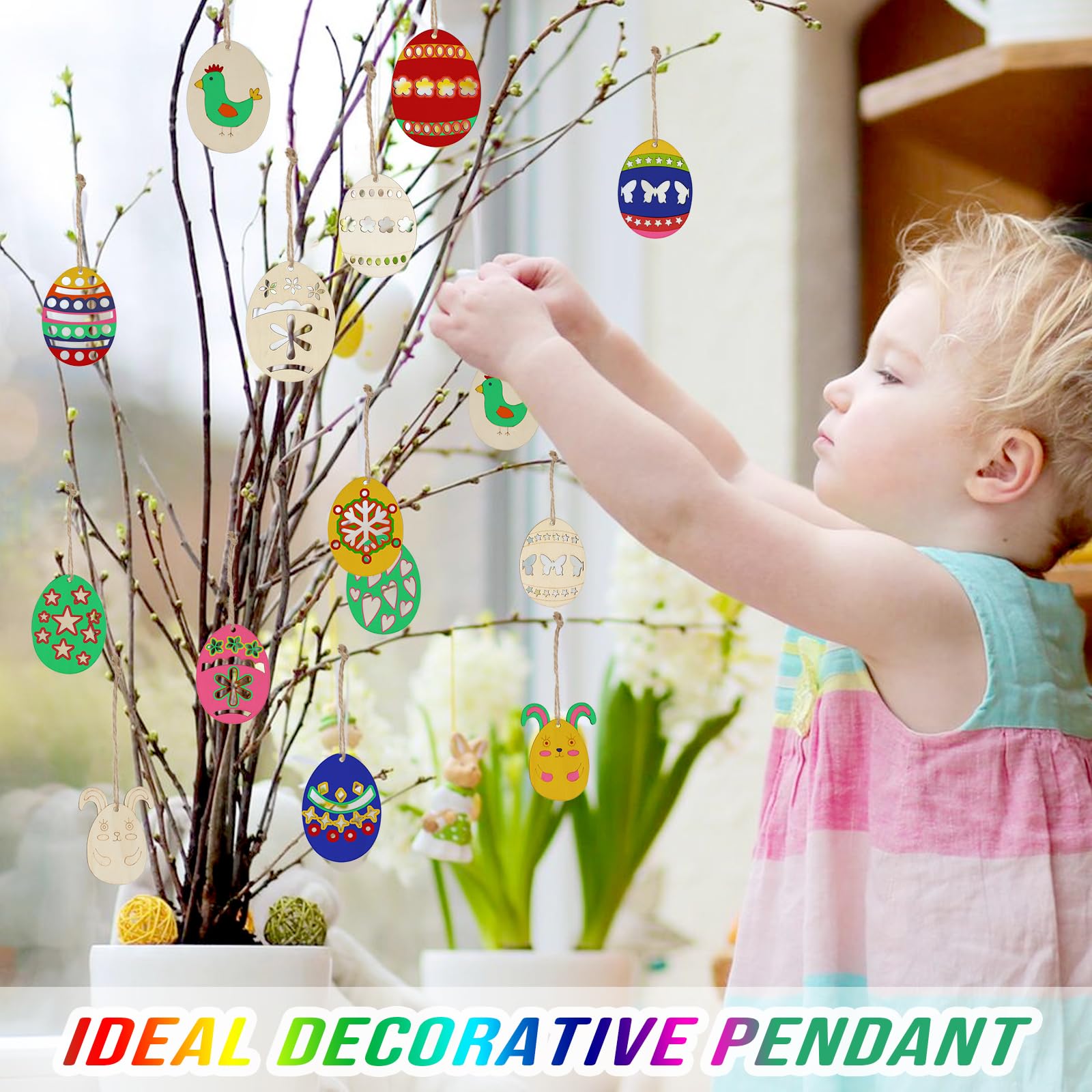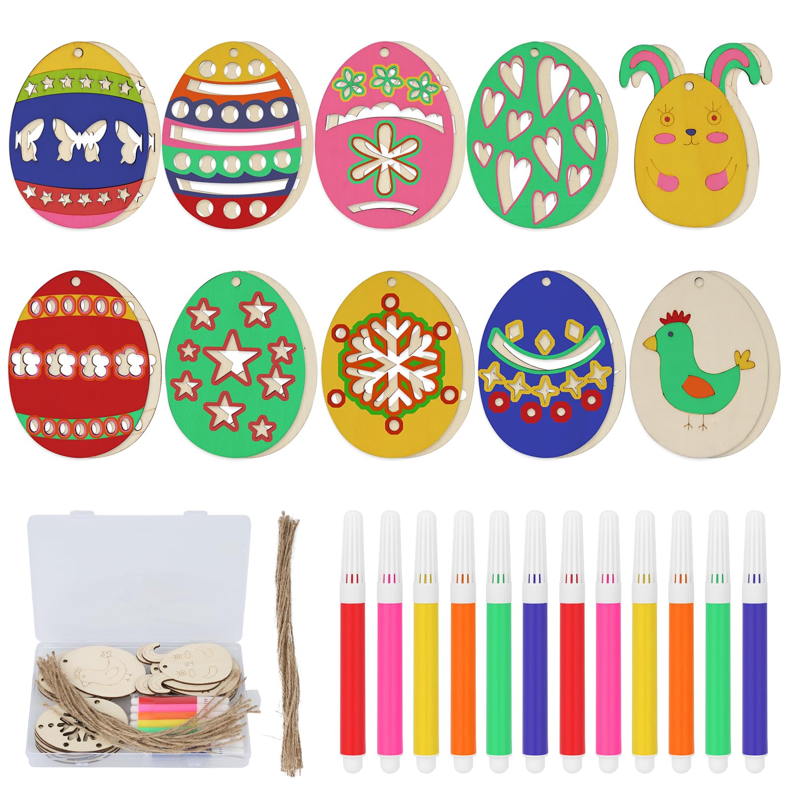 Ce kit de déco Pâques est juste génial pour occuper les enfants pendant les vacances ! T'as 305 pièces au total : 56 pendentifs en bois non finis avec 25 formes différentes (lapins, œufs, poussins...), 50 cordons, de la poudre d'or, 160 pompons, des autocollants strass et yeux, du ruban adhésif, 2 pinceaux, 12 couleurs et une palette. Le bois est naturel, bien poncé sans bords rugueux, et tu peux peindre des deux côtés. Parfait pour créer des décorations d'arbre de Pâques, des étiquettes cadeaux, ou pour des activités manuelles à l'école. Les kids adorent, et ça favorise la créativité et les moments en famille. Le pack fait 24x22x4 cm pour 308g - facile à ranger. Prêt pour des Pâques colorées ?