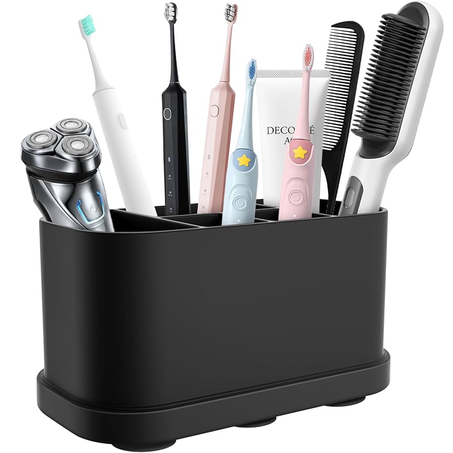 Finis le bazar sur le lavabo ! Ce porte-brosse à dents en grain de bois (13x9.5x11.5cm) range 4 brosses avec style. Trous de drainage et aération pour éviter l'humidité et les odeurs. Pieds antidérapants, design détachable pour un nettoyage facile. Matière plastique qualité alimentaire, durable et anti-rouille. Parfait pour les brosses électriques ou manuelles. Donne un look organisé et propre à ta salle de bain en 2 secondes !