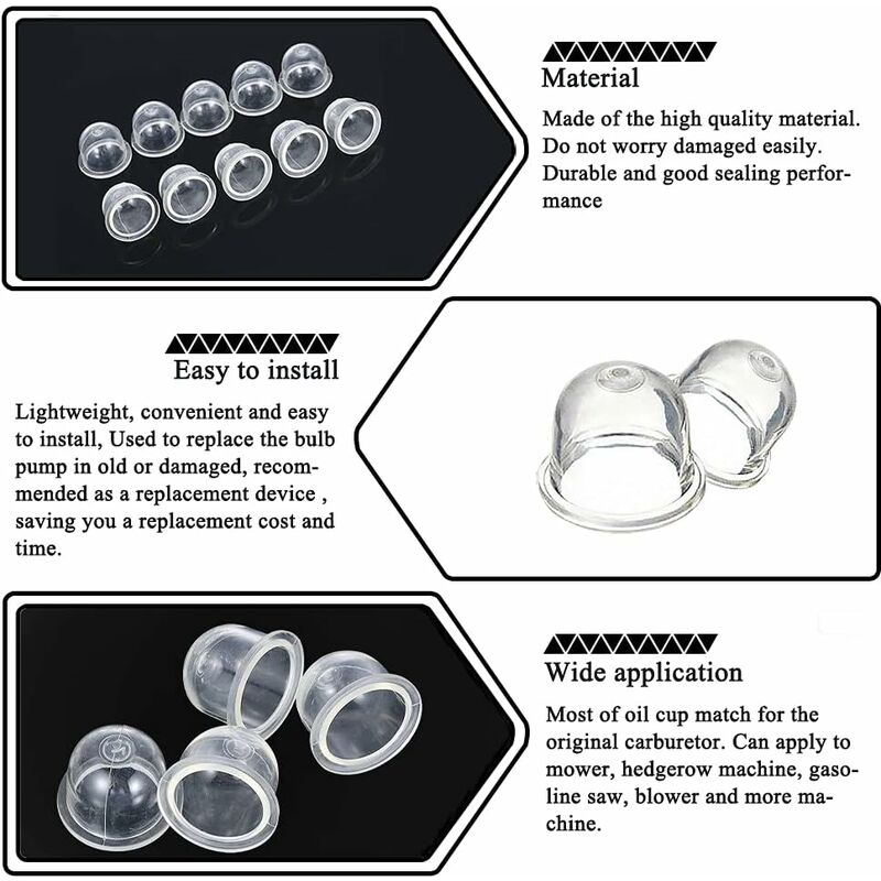 Ces pompes à amorce sont essentielles pour l'entretien de tes moteurs ! En silicone transparent, tailles 19mm et 22mm, elles assurent une bonne étanchéité et facilitent le démarrage. Parfaites pour les tondeuses, tronçonneuses, débroussailleuses, etc. Pack de 12 pièces, donc t'en as pour un moment. Un must pour tout bricoleur !