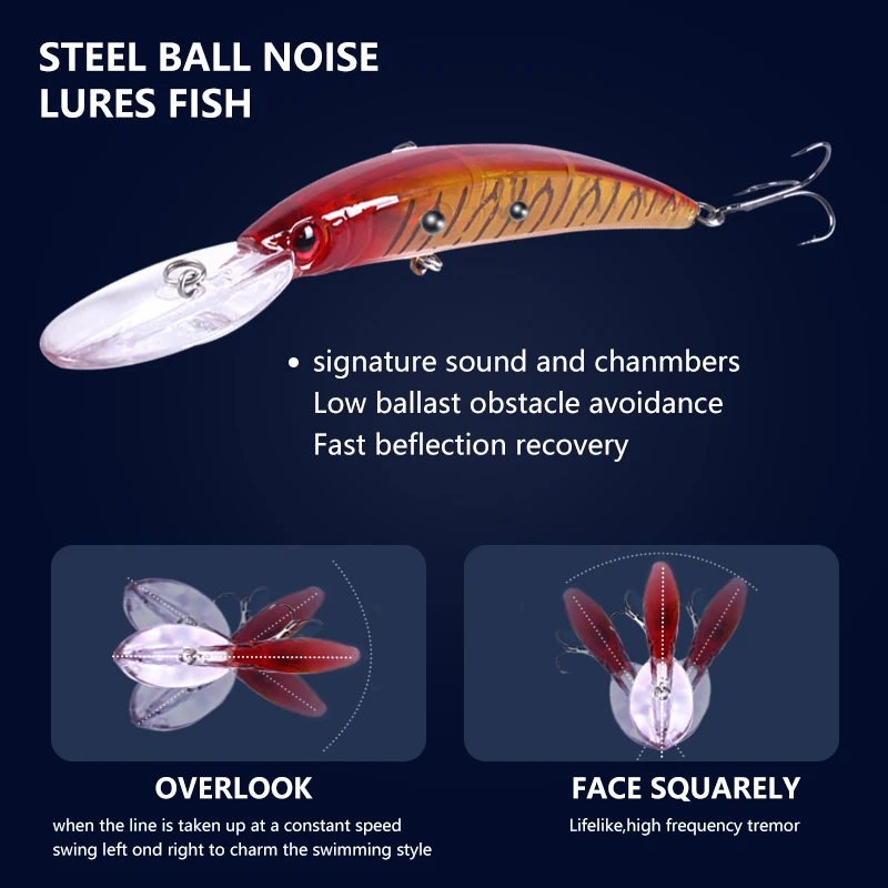 Pour attirer les gros poissons ! Ces 6 leurres hyper réalistes ont des yeux 3D et des finitions holographiques qui brillent dans l'eau. Avec hameçon triple sur le ventre et simple sur le dos, déjà montés donc prêts à l'emploi. Nage naturelle à toutes les vitesses. Parfaits pour la pêche en mer, en bateau ou depuis la plage. Si tu veux augmenter tes chances de capturer du bar ou autre poisson chasseur, ces leurres sont efficaces et durables. Bien plus malins que les vers en plastique basiques !