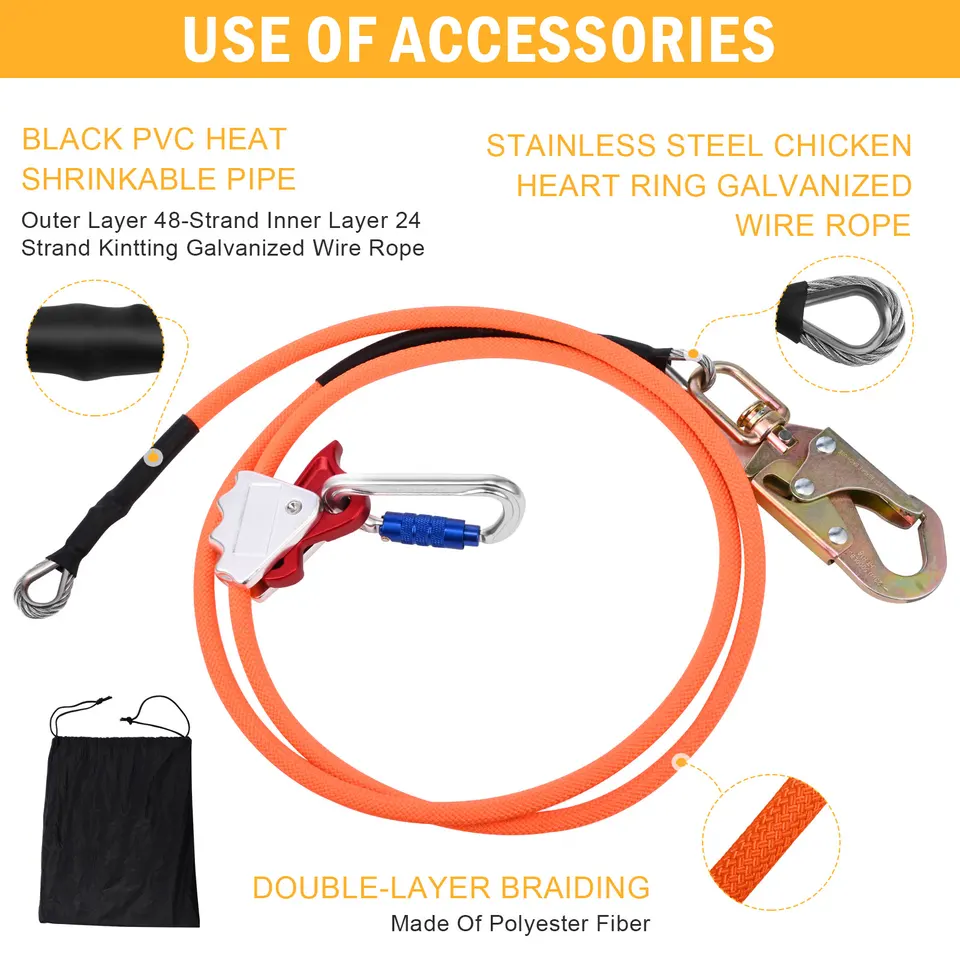 Pour tous les pros et amateurs de grimpe d'arbres, ce kit de ligne de vie est un must-have de sécurité ! Avec son noyau en acier de 12mm recouvert de nylon, il offre une rigidité parfaite pour manipuler facilement les troncs, même les plus gros. Le mousqueton à triple verrouillage garantit une sécurité maximale contre les ouvertures accidentelles. Disponible en 3 longueurs (2.4m, 3m, 3.6m) pour s'adapter à toutes les situations. Le système de réglage à rabat est intuitif et rapide. Idéal pour l'élagage, la taille, ou toute activité en hauteur. Livré avec une pince fixe et un bouton poussoir en acier. Un équipement robuste et fiable pour travailler en toute tranquillité !