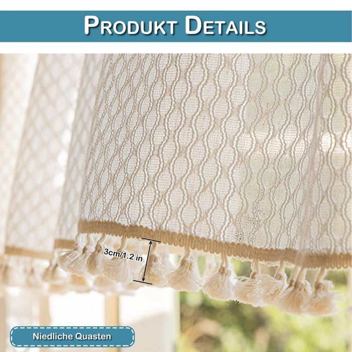 Ce brise bise voilage est trop mignon avec sa frange à pompons ! En polyester transparent, il laisse passer la lumière tout en protégeant des regards. Se fixe sans perçage sur les tringles de 3cm de diamètre. Dimensions : 40x90cm. Lavable à 30° en délicat. Parfait pour la cuisine, la salle de bain ou l'entrée. Livré à l'unité. Note : la photo montre 2 rideaux pour l'effet déco, mais vente à l'unité. Prêt à ajouter une touche de douceur à votre déco ? 🏡