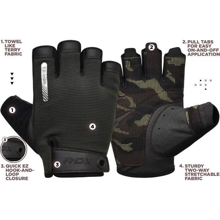 Pour tes séances de muscu ou de fitness, équipe-toi des gants RDX ! En coton respirant, ils évacuent la transpiration et te protègent des ampoules. Le revêtement en silicone et le rembourrage en gel EVA amortissent les chocs et améliorent ton grip sur les poids. La sangle ajustable stabilise tes poignets pour soulever en sécurité, et la fibre douce sur le pouce ajoute un confort supplémentaire. Plus d'excuse pour ne pas aller à la salle – avec ces gants, tu es paré pour tout exercice !
