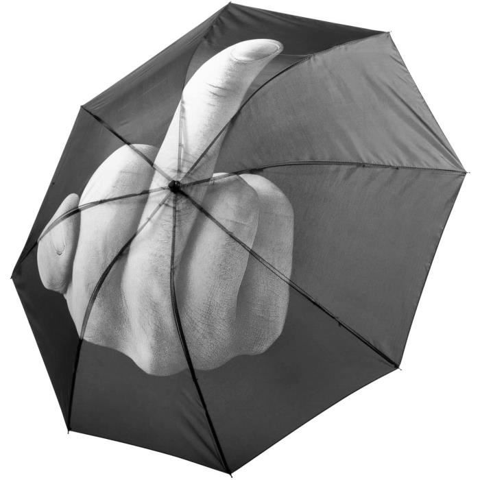 Ce parapluie va faire parler ! Avec son motif « doigt d’honneur », il est parfait pour afficher ton humour (un peu) provoc ou pour offrir à un ami qui aime les cadeaux décalés. Il est en noir, pliable, et fait 95 cm de diamètre. La toile est imperméable et résistante au vent (mais évite les tempêtes quand même !). Idéal pour la pluie légère ou comme accessoire rigolo en soirée. Livré avec un ruban pour le fermer. Attention : bien l’ouvrir lentement pour ne pas casser les baleines. Un parapluie qui ne passe pas inaperçu – pour ceux qui aiment sortir du lot !