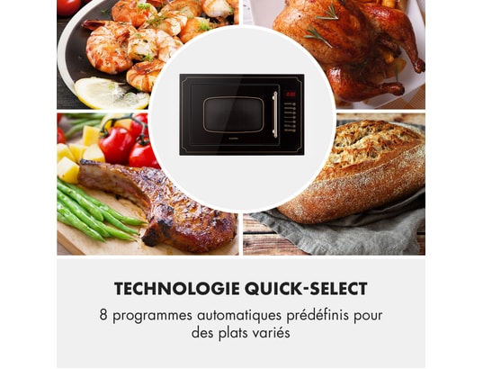 Hey les cuisiniers ! Ce micro-ondes encastrable Klarstein Victoria 20 a un look rétro trop classe qui va déchirer dans ta kitchen. Avec ses 20 litres, t'as de la place pour réchauffer tes plats, décongeler ou même griller grâce à la fonction grill de 1000W. Il fait micro-ondes (800W), grill et combine les deux - tu as 5 niveaux de puissance pour adapter la cuisson à ce que tu prépares. Le plateau tournant en verre fait 24,5 cm et l'intérieur est en inox SimpleClean, donc super facile à nettoyer. L'encastrement est fourni avec le cadre, et les poignées sont ergonomiques. Tu peux régler la minuterie très précisément, et quand c'est fini, il bipe pour te prévenir. Franchement, si tu veux un appareil multifonction, powerful et stylé, c'est celui-là qu'il te faut. Parfait pour les familles pressées ou les gourmands qui aiment tout griller.