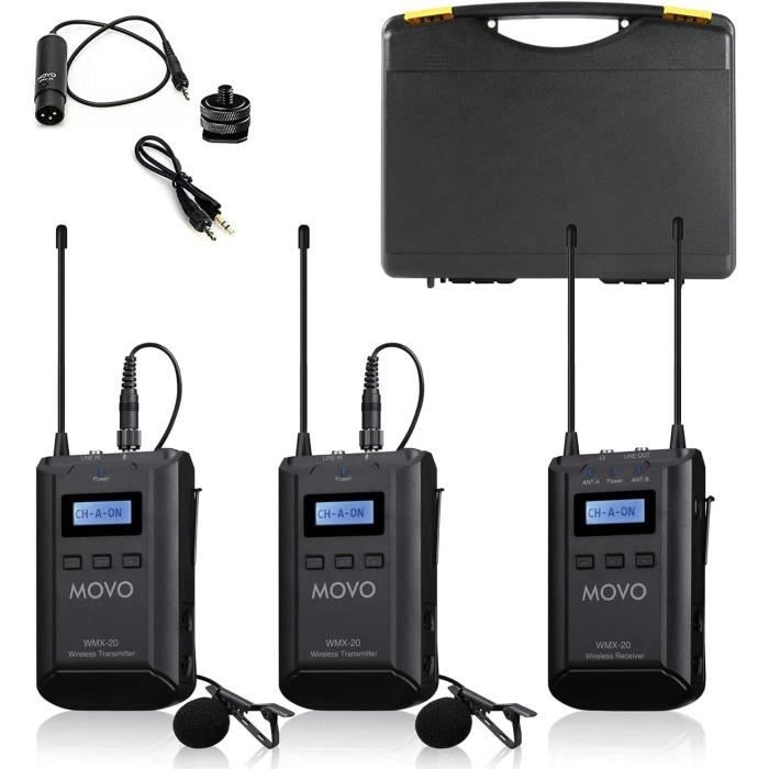Créateurs de contenu, vloggers, ou juste passionnés de vidéo ? Ce kit micro sans fil Movo est ton nouveau best friend ! Il comprend un émetteur, un récepteur, un micro lavalier et tous les câbles (TRS pour appareils photo, TRRS pour smartphones/tablettes). La transmission en 2.4GHz offre une portée de 60m sans interférence, avec un son clair et net. Le récepteur a une entrée casque pour monitorer en direct, et un clip ceinture + montage sur griffe. Parfait pour les interviews, les vidéos YouTube, les reportages... Plus de fils qui traînent ! Alimenté par piles, livré dans une boîte rigide pour le transport. Et en plus, garantie 1 an avec SAV US. Ready to sound pro ?