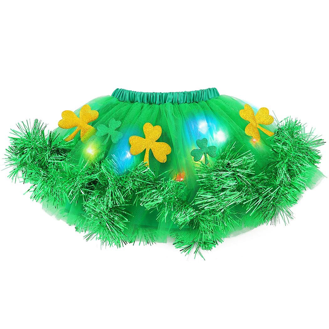 Cette jupe tutu Flovel est juste magique pour la Saint-Patrick ! En tulle doux et moelleux, avec des motifs trèfles et des LEDs qui scintillent (3 modes : lumière constante, flash rapide et lent). Parfaite pour les fêtes, carnavals, ou juste pour s'amuser. Les filles adorent son style unique et lumineux. Lavage main uniquement. Offrez-leur un look de star !