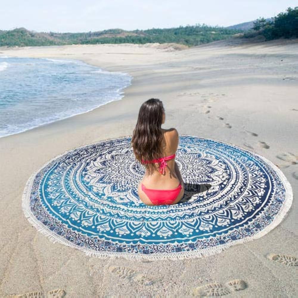 Changez de la serviette de plage classique ! Cette serviette ronde Mandala de 150cm de diamètre est non seulement super confortable (en microfibre douce et absorbante), mais en plus elle est magnifique avec ses imprimés bohème et ses pompons colorés. Elle sèche vite, se roule facilement, et peut servir de tapis de pique-nique, de couverture, ou même de déco murale. Parfaite pour deux personnes. Un must-have pour les beach lovers qui aiment allier style et practicality !