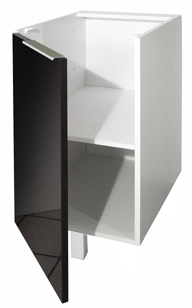 Coucou les bricoleurs ! Ce meuble de cuisine Berlenus est top pour compléter ton aménagement - dimensions 30x52x83 cm, en mélaminé blanc avec porte noire haute brillance. Livré en kit complet avec charnières, pieds réglables, 1 rayon ajustable et poignée alu. Fabrication française, donc qualité assurée ! Super facile à monter, même pour les débutants. Parfait pour ranger tes casseroles ou produits d'entretien. Donne un look moderne à ta cuisine sans se ruiner. Livraison : le meuble en carton. Prêt à devenir le pro du rangement !