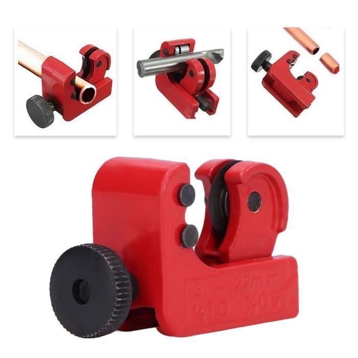 Ce mini coupe-tube est parfait pour les travaux précis ! Il coupe les tubes de 3 à 22mm (1/8 à 7/8) en cuivre, laiton, aluminium, etc. Sa petite taille (60x38x22mm) lui permet d'accéder aux espaces restreints, comme dans les automobiles ou l'électricité. La roue en acier allié est durable et résiste à l'usure. Coupe nette et rapide sans bavures. Maniable et robuste. Un outil pro pour les plombiers, électriciens, ou bricoleurs qui ont besoin de précision.
