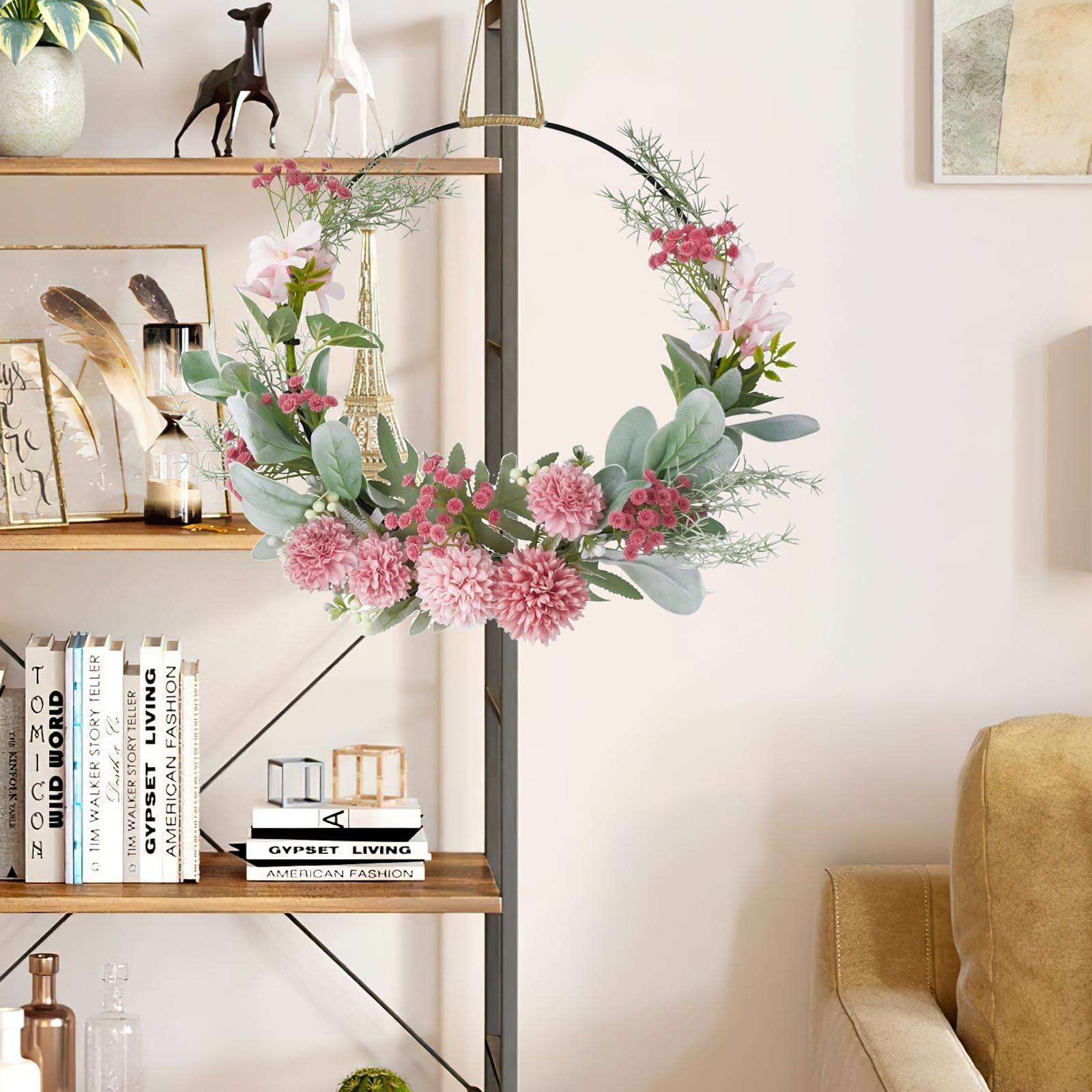 Cette couronne de fleurs artificielle est trop jolie pour décorer ta porte d'entrée, ton salon ou même pour une fête ! Avec un diamètre de 40 cm (intérieur 28 cm), elle est faite en fer et tissu, avec des fleurs roses, violettes et des feuilles vertes réalistes. Hyper résistante, elle ne se déforme pas et garde ses couleurs vives longtemps. Parfaite pour Pâques, Noël, ou juste pour ajouter une touche naturelle à ta déco. Livrée prête à accrocher. C'est aussi une super idée de cadeau pour un pendaison de crémaillère !