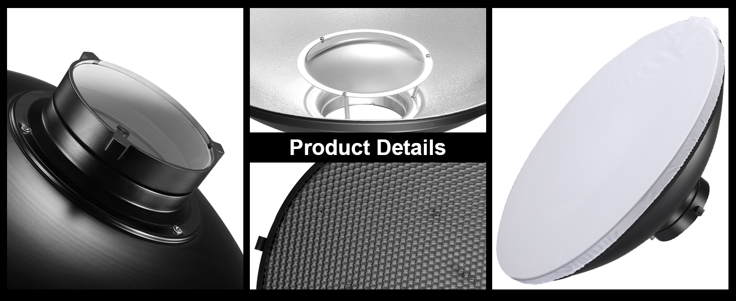 Ce beauty Dish Soonpho de 55 cm, c'est l'accessoire qu'il te faut pour des photos pro ! Il se monte sur les flashs avec fixation Bowens (adaptateur nécessaire sinon) et diffuse une lumière douce et uniforme sur ton sujet. La grille en nid d'abeille rend la lumière plus directionnelle, parfaite pour les portraits ou les shots produits. L'intérieur argenté donne des effets profonds et stylés. En aluminium, il est solide et facile à transporter avec son sac inclus. Si tu veux upgrade ton setup photo, ce beauty dish est un must !