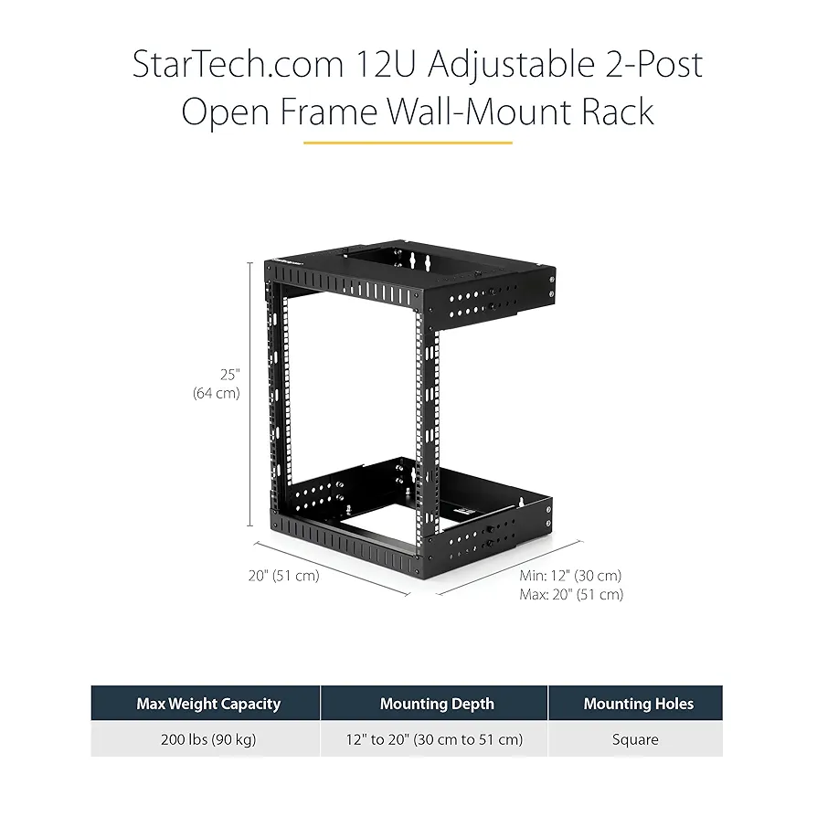 Un rack open frame 12U super pratique pour organiser ton matos audio, vidéo ou réseau ! Conforme aux normes EIA, il est léger et facile à déplacer. Parfait pour les petits espaces où une armoire full size serait overkill. Livré avec 20 vis M5 et écrous cage pour monter jusqu'à 5 appareils direct. Compatible avec les switchs, routeurs, KVM, etc. Assemblage fastoche, et garanti à vie par StarTech. Conforme TAA pour les achats gov US. Idéal pour les home offices, les salles server compactes, ou les setups pro. Plus besoin de s'embêter avec l'organisation – ce rack garde tout accessible et bien rangé. La solution maline pour les tech lovers !