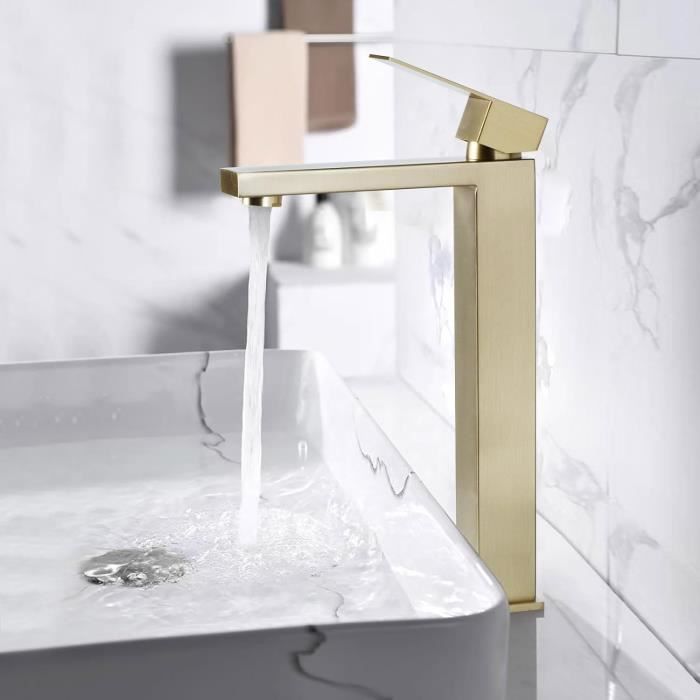 Ce mitigeur PHASAT va carrément transformer ta salle de bain ! Avec son look ultra moderne en acier inoxydable et finition or brossé, il apporte une touche d'élégance direct. Le bec haut est super pratique pour se laver les mains sans se cogner, et l'aérateur intégré évite les éclaboussures - fini le nettoyage constant du lavabo. La cartouche en céramique a été testée 500 000 fois, donc zéro fuite garantie. Installation easy avec les deux flexibles de 50cm fournis. Parfait pour une salle de bain perso, un hôtel ou même des toilettes publiques. Un robinet qui allie style, qualité et praticité !
