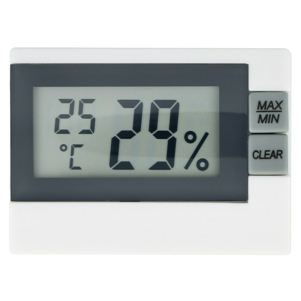 Ce petit thermo-hygromètre TFA est super pratique pour surveiller le climat chez toi ! Il affiche température et humidité, avec des smileys pour te dire si c'est confortable ou pas. Fonction max/min, aimant au dos pour le fixer sur le frigo, et 4 modes : maison, instruments de musique, terrarium ou humidor. Parfait pour éviter la moisissure, protéger tes instruments ou prendre soin de tes plantes/animaux. Précis et facile à utiliser !