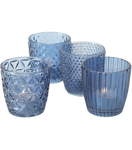 Ces petits photophores en verre bleu foncé apportent une touche d'élégance à tes tables de fête ! Lot de 4 - parfait pour un centre de table ou pour créer une ambiance tamisée. Chaque photophore peut accueillir une bougie chauffe-plat (non fournie). Dimensions : 5,1 x 6 x 5,1 cm. Super pour un mariage, un anniversaire ou juste pour décorer ta maison le soir. Emballés dans une jolie boîte cadeau. Attention : ne pas laisser sans surveillance quand les bougies sont allumées !