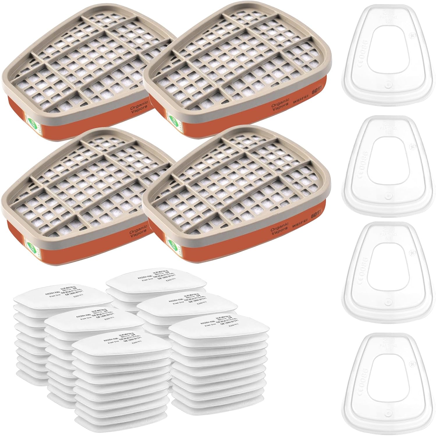 Les amis bricoleurs et pros, ce kit de 60 filtres est une vraie bonne affaire pour tes masques de protection ! Compatibles avec les modèles 3M 6100, 6200, 7501, 7502 et 6800, ces filtres en coton de haute qualité offrent une protection efficace contre les poussières (ponçage), les vapeurs de peinture, les produits chimiques et les mauvaises odeurs. La résistance respiratoire est faible donc tu respires facilement même pendant des heures de travail. Le pack comprend 60 filtres + 2 cartouches + 2 capuchons de protection. Change les filtres toutes les 8 heures d'utilisation pour une sécurité optimale. Parfait pour les travaux de rénovation, la menuiserie, la mécanique ou tout projet qui génère des particules. Un essentiel pour protéger tes poumons sans te ruiner !