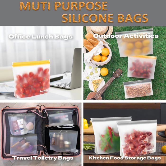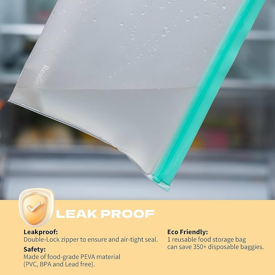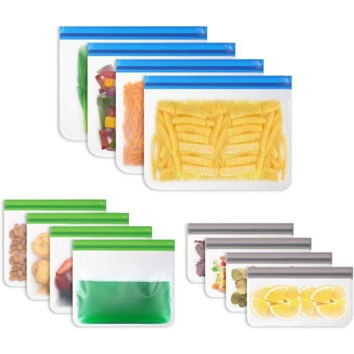 Pour arrêter de gaspiller du plastique ! Ces 15 sacs de congélation réutilisables en PEVA sans BPA sont safe pour la bouffe. Imperméables, bien scellés (double fermeture zip), et ils tiennent debout dans ton frigo. 3 tailles : 5 grands (28x21x8cm), 5 sandwichs (21.5x18x5cm), 5 snacks (21.5x13x5cm). Parfaits pour congeler de la viande, des légumes, ou pour emporter ton repas. Lavables et durables. Écolo et économique ! 🥦
