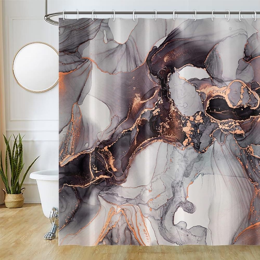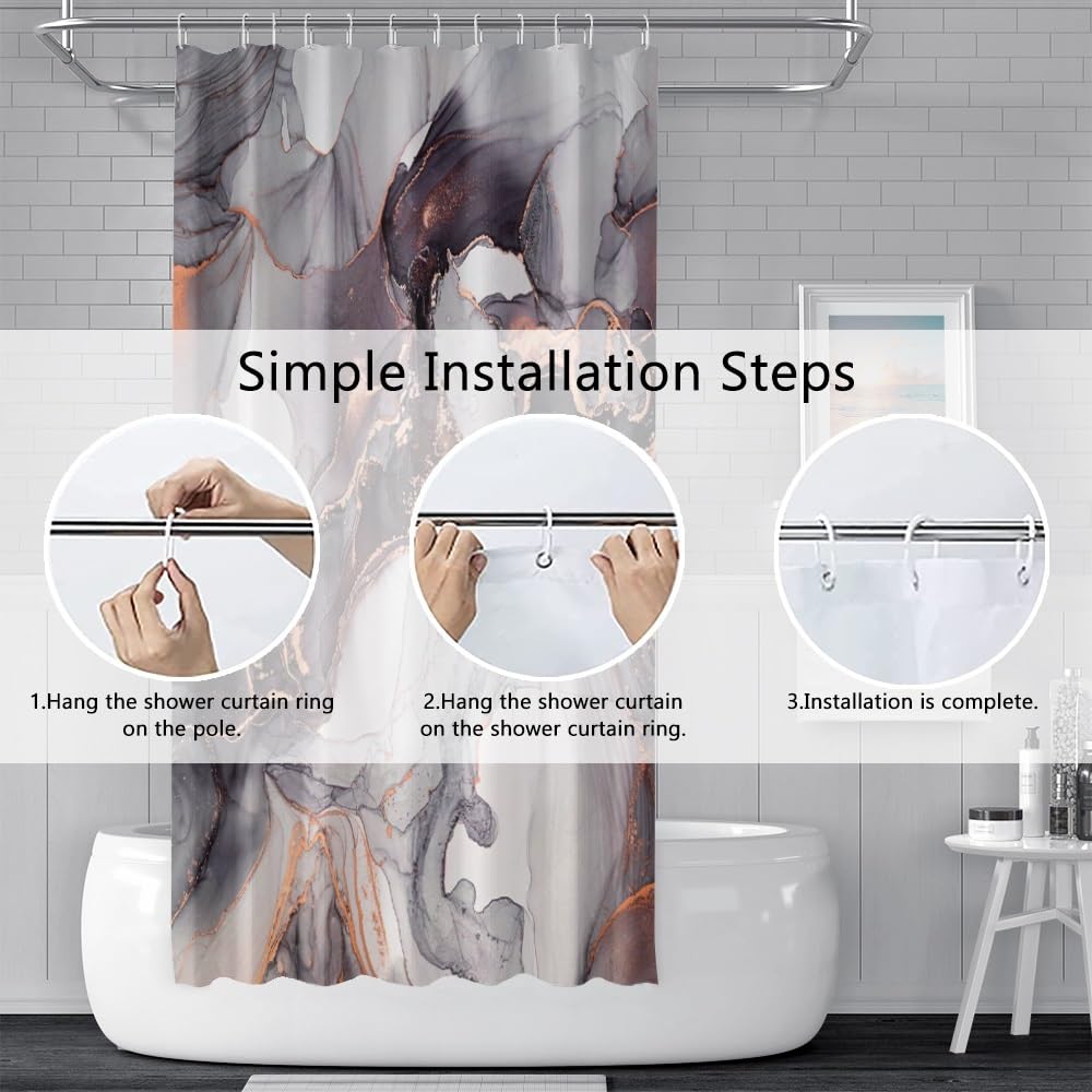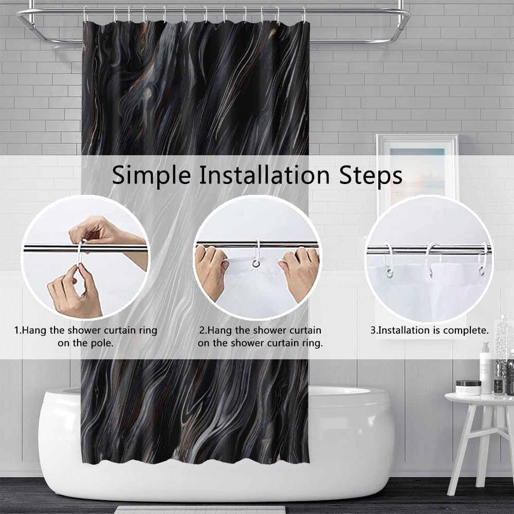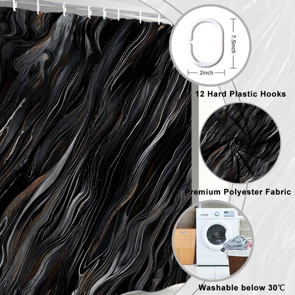 Ce rideau douche Uiiooazy ajoute du luxe à ta salle de bain ! Design marbre noir et or, 150x200cm, en polyester imperméable et anti-moisissure. Œillets inox, livré avec 10 crochets. Lavable en machine à 30°C. Translucide pour garder de la lumière. Transforme ta douche en spa !