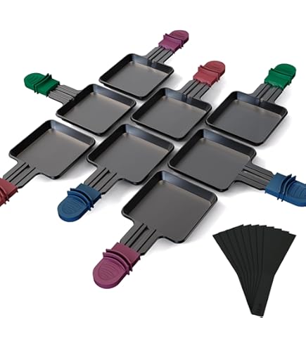 Prêt pour une raclette de ouf ? Ces 8 coupelles SOS Accessoire sont parfaites pour tes appareils à raclette, gril ou wok. En acier avec revêtement Xynflon antiadhésif (sans PFAS, donc safe), et ça va au four jusqu'à 180°C. Poignée en plastique résistant, lavable au lave-vaisselle. Formes carrée et triangulaire pour varier les plaisirs. Plus de galère pour décoller le fromage ! Pratiques, durables et faciles à nettoyer. indispensable pour les soirées raclette entre potes !
