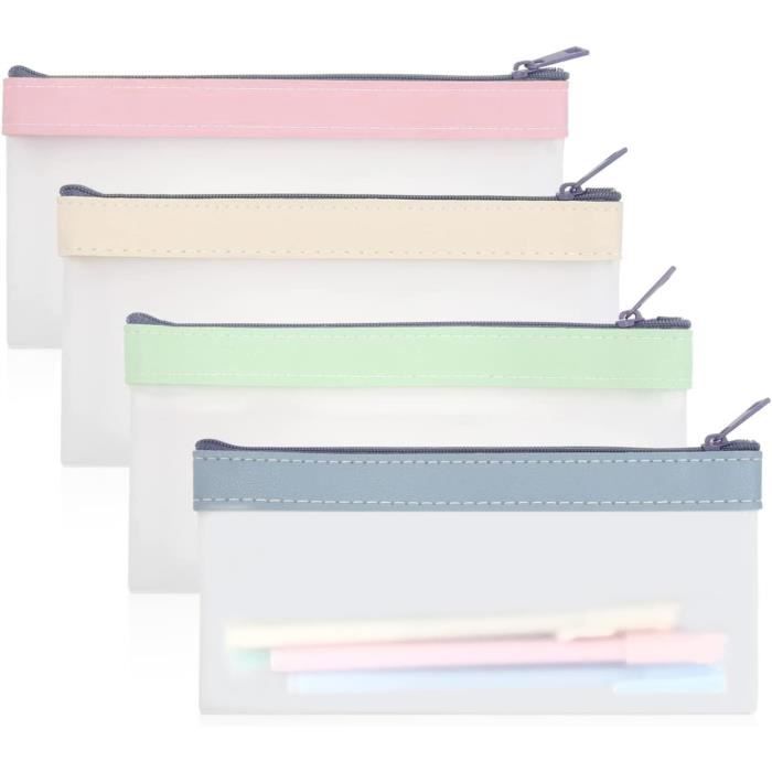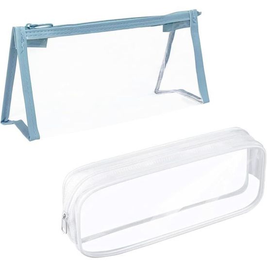 Ces 4 trousses transparentes sont hyper pratiques ! En PVC solide et imperméable, fermeture éclair fluide, taille 22x10x6cm. Parfaites pour ranger des crayons, du maquillage, des produits de toilette en voyage... Transparentes donc on voit tout tout de suite. Coloris : bleu, noir, rose, blanc. Cadeau idéal pour un étudiant ou pour s'organiser !