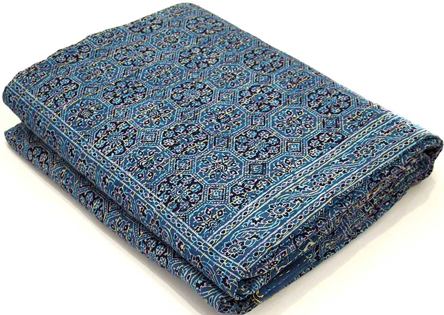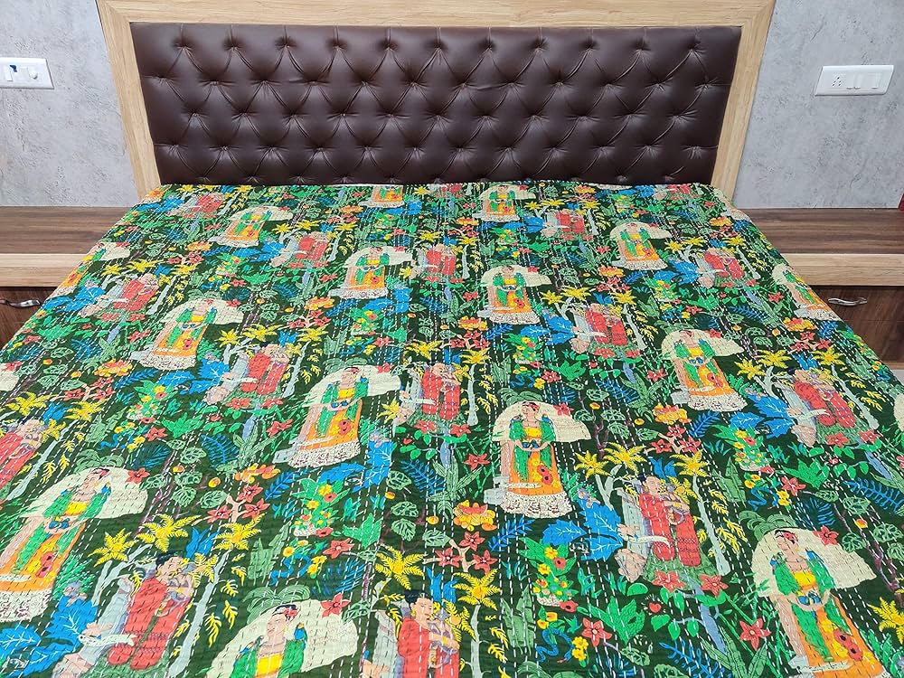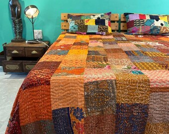 Apporte une touche bohème et colorée à ta déco ! Ce couvre-lit en coton est brodé main au Rajasthan avec la technique Kantha. Réversible, léger, et super confortable. Dimensions 274x274 cm - parfait comme couvre-lit, jeté, ou même tapis de pique-nique. Lavage à sec uniquement. Chaque pièce est unique ! 🛏️