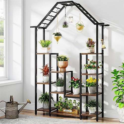 Pour les fans de plantes qui manquent de place ! Ce support Tribesigns peut accueillir au moins 11 pots de différentes tailles. En métal et panneaux de particules, il est solide et résiste à l'humidité. Design à niveaux variables pour que chaque plante ait sa dose de lumière. Dimensions : 100x44x110cm. Montage facile. Parfait pour décorer ton salon, balcon ou jardin.